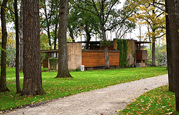 Lloyd Lewis Residence & Farm Unit, Libertyville, Illinois, 2019 (1939/43 - S.265/266). Set of 80 images of the Lloyd Lewis Residence, photographed on October 16, 2019. On a road trip through the Midwest, we took the opportunity to visit and photograph the Lloyd Lewis Residence. Designed by Frank Lloyd Wright in 1939. Wright resurrected the Willey Scheme I design, first conceived in 1932. October 14 was a beautiful, slightly overcast fall Midwest day, perfect for capturing the Lewis Residence.