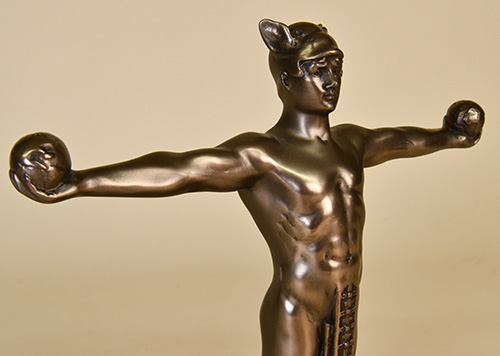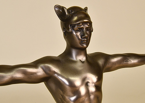 Label affixed to base: “The Spirit of Mercury.” Reproduction of Richard Bock’s design for Frank Lloyd Wright’s City National Bank, 1910.
