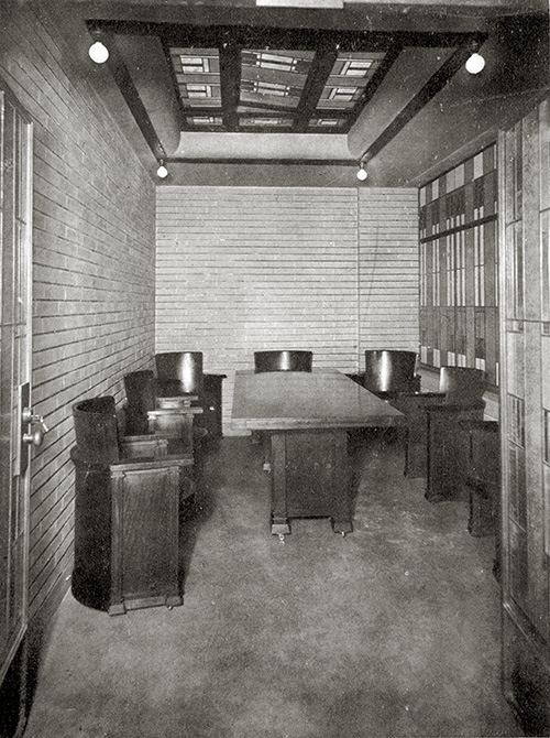 The law office of developer-owners Blythe and Markley was open for business on August 29, 1010, with the gala opening of the entire structure September 10 of that year. Wright returned to the Midwest from his year in Europe in October, 1910.