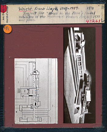 Description: Perspective view of the Sturtevant Residence. Designed by Frank Lloyd Wright in 1952, the house was designed for a hillside in Oakland, California. The house was never built and remained a project. Frank Lloyd Wright resurrected the design for the Boulter Residence, lengthening the living room by one - four foot section. Like the Boulter Residence, it was to be constructed of concrete block. Text lower left: “House for Mr. and Mrs. Horace B. Sturtevant, Oakland, California. Frank Lloyd Wright Architect.” Courtesy of the Frank Lloyd Wright Archives, Avery Library.