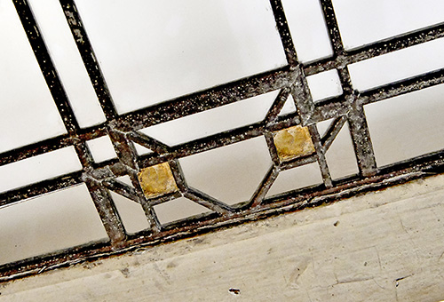 “Richard Nickel was arrested on April 6, 1963, for removingleaded-glass windows from the Oscar Steffens residence, anabandoned Frank Lloyd Wright home on Sheridan in the process of being demolished. Aaron tipped him off that the home was scheduled to be razed. The first-floor windows had been shattered by kids, and only ten of twelve remained on the second floor when Nickel decided to try and save them. The police saw him moving them from the house to the sidewalk. He tried to explain to them their significance. Frank Lloyd who, they asked. The charges were finally dropped.” Keeper of the Rise, Nathan Prince, 2017. Many of the windows Nickel saved remained intact.
