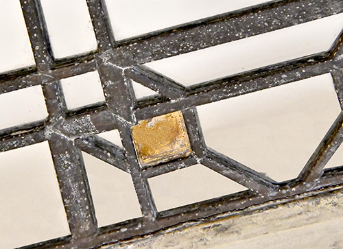 Thomas Heinz wrote, “The use of blue glass was very unusual in the Prairie years but signaled what was to come in the Barnsdall (1705) and Ennis (240l) Houses. The patterns in this house frequently extended through several windows. The design seems to be a development of what was started in the same year at the Mrs Gale Thomas House (0905).” Frank Lloyd Wright Art Glass, Heinz, 1994, p.143.