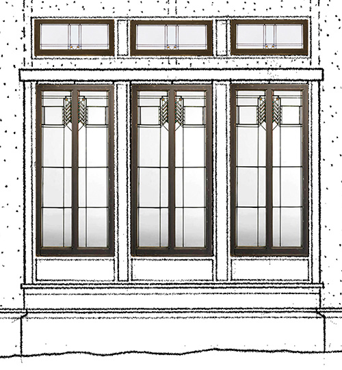 Addition of living room windows. Salvaged windows, saved from destruction and vandalism have survived and maintained by collectors. We inserted examples of the living room and celestory windows. Modified and recreated by Douglas M. Steiner. (S#0086.39.1225)2) Detail of the Oscar Steffens Residence West Elevation / Windows, 1909 (1909 - S.153). Addition of living room windows. Salvaged windows, saved from destruction and vandalism have survived and maintained by collectors. We inserted examples of the living room and celestory windows. 3) Detail of the Oscar Steffens Residence West Elevation / Windows, 1909 (1909 - S.153). Addition of living room windows. Salvaged windows, saved from destruction and vandalism have survived and maintained by collectors. We inserted examples of the living room and celestory windows. 4) Detail of the Oscar Steffens Residence West Elevation / Windows, 1909 (1909 - S.153). Addition of living room windows. Salvaged windows, saved from destruction and vandalism have survived and maintained by collectors. We inserted examples of the living room and celestory windows. OSCAR STEFFENS RESIDENCE 1910