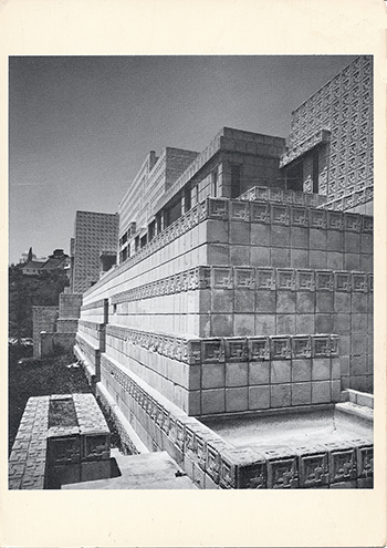 6) Stunning Ennis-Brown House photos in new FLLW Volume. Includes 5 photographs and illustrations. Gift from Kathryn Smith.