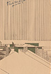 Stylized illustration of Taliesin, first illustrated in 1939 for the broadside Taliesin. It described Taliesin, the Taliesin Fellowship, the Taliesin Playhouse and its programs. The Tower and Hill Apartments are on the left, the Studio in the center and the private residence on the right.