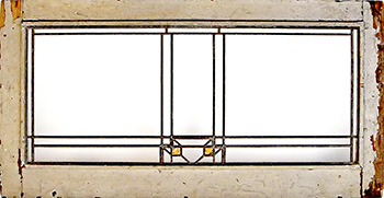 The B. Harley Bradley House featured over ninety leaded art glass windows. Art glass windows and doors throughout the house utilized a variation of the same design. They are also more complex than any of Wright’s earlier designs. This is the first time that the design continues through a number of windows. Multiple windows create a single design. The angles in the windows mimic the angles of the roof line. Windows were executed in three different lead cames, 1/2", 5/16", 3/16". The glass is clear with accents of white and red glass.