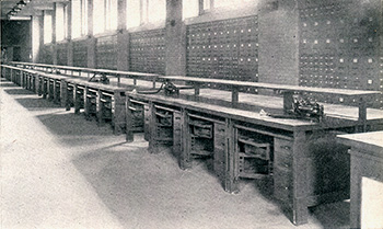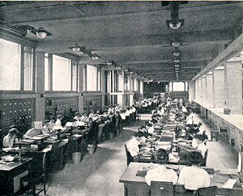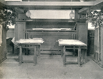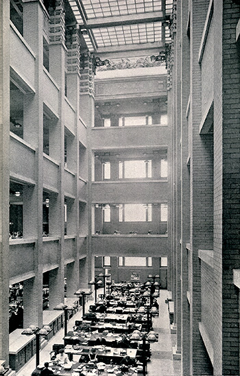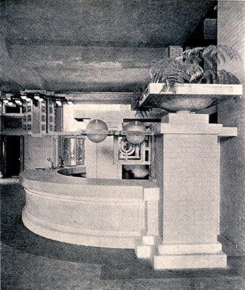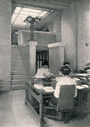 Description: “The Larkin Building in Buffalo. This business building, the architectural creation of Mr. Frank Lloyd Wright of Chicago, is reproduced in many excellent photographs, some of which will be shown in this article and others in the March number of the Architectural Record. From among them I select Fig. I as the most capable of giving a general idea of the design. The plan given in Fig. 8 shows the purpose of each member of the building, and the scale can be estimated as to the heights, on the basis afforded by the steps of the entrance doorways, checked by the height of the doorway (seen in Fig. I) themselves, and by comparison with the plan. It is not safe to utilize be of unusual dimension or laid with unusually wide joints. The nearest tower-like mass in Fig. I – that against which the telegraph pole is seen relieved – is about 90 feet high...” Includes six photographs and one illustration. See additional information concerning the Larkin Building...