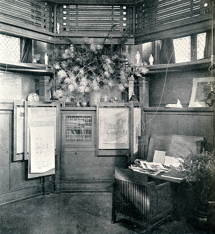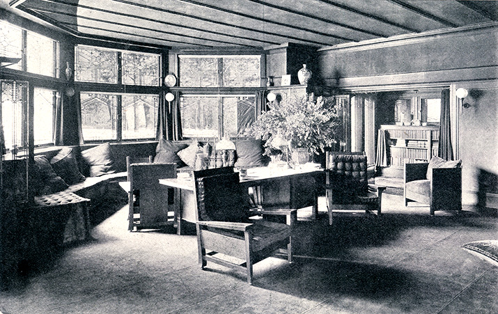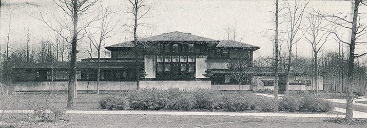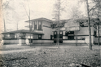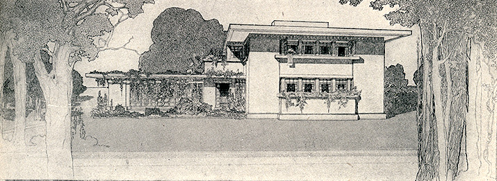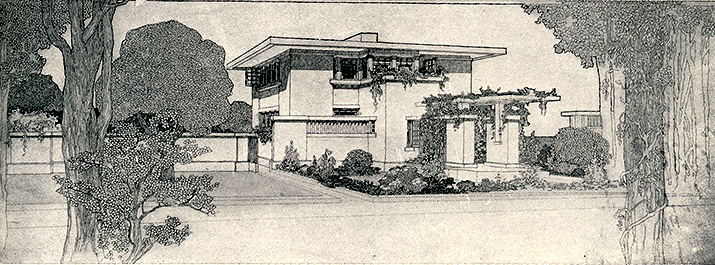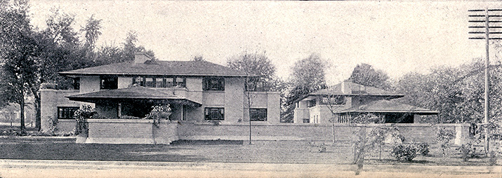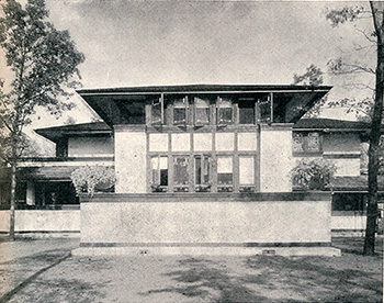 Includes eight photographs of Wright’s houses including, Bradley (4), Hickox, Willet (2) and Husser. Photographed by Henry Fuermann. (Sweeney 58)