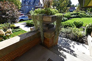 Summit Avenue, the sidewalk leads to the front stairs. Turning