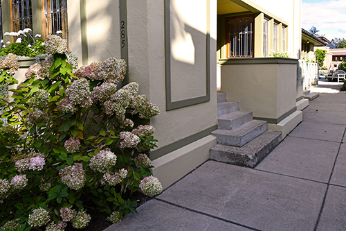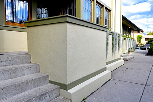 materials are wood frame and stucco. The treatment of the