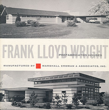 Description: Booklet on the Frank Lloyd Wright Designed Erdman Prefabricated Homes. The New York Times Magazine, October 25, 1959 reported, "Frank Lloyd Wright designed three prefabricated houses for Marshall Erdman Associates in Madison, Wisconsin. The first, produced in 1956 is typical of his rambling, ground-hugging style. The second went into production last summer (1958) and is shown on these pages. The third is not yet on the market..." Includes photographs, floorplan and text of Prefab 1, published in House & Home, December 1956. It also reprints an article concerning Prefab 2, published in The Milwaukee Journal, June 21, 1959, and The New York Times Magazine, October 25, 1959. Gift from Kathryn Smith. (First Edition)