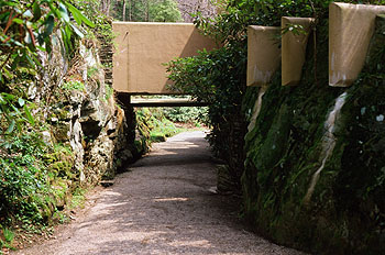 Description: Newsletter: Update on Fallingwater Restoration: Temporary Shoring Installed. In April in western Pennsylvania, you expect to see men in hipwaders standing in near-freezing stream waters. That's exactly what's been happening this spring at Fallingwater, but it isn't trout these men are after. They are structural engineers and a dedicated local contracting firm's crew, charged with the responsibility of installing temporary steel shoring under Fallingwater's famed cantilevers...