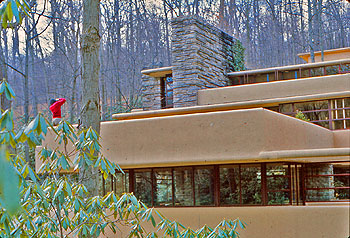 Description: "Frank Lloyd Wright's world-famous masterwork, designed in 1936 for Liliane S. and Edgar J. Kaufmann. Entrusted in their memory to the Western Pennsylvania Conservancy." Photography by Christopher Little.