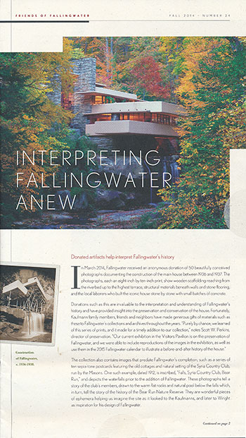 Title: Friends of Fallingwater - Number 24 - Fall 2014 (Published by the Western Pennsylvania Conservancy, Pittsburgh, PA)