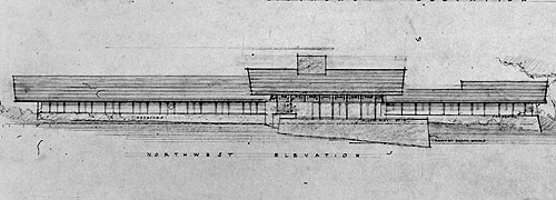 Residence. Designed by Frank Lloyd Wright in 1955. Elevations