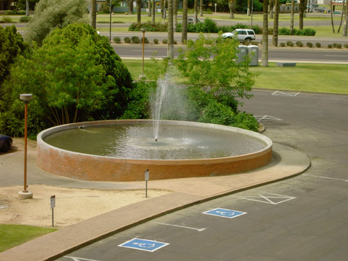 28) Grady Gammage Memorial Auditorium (1959 - S.432) 2004. Western fountain viewed from the ramp. (ST#2004.39.0714-28)