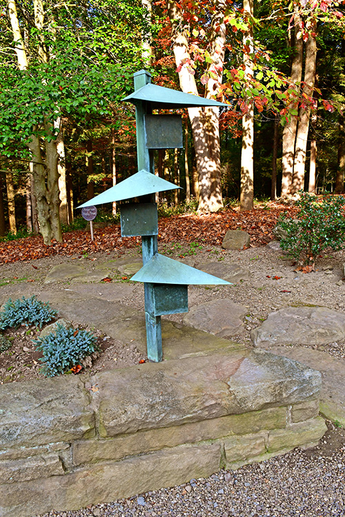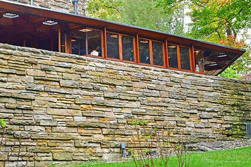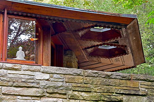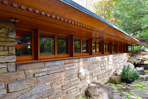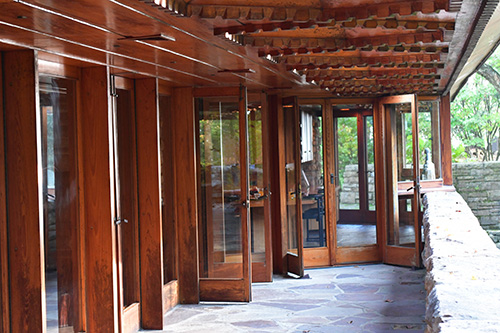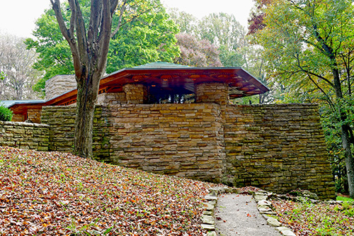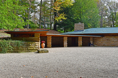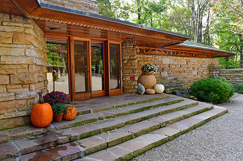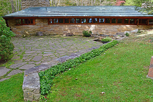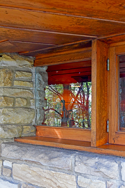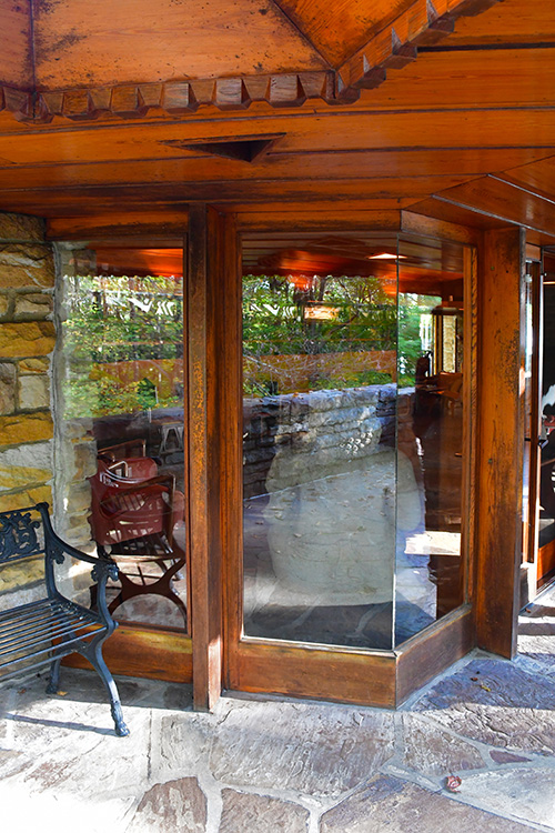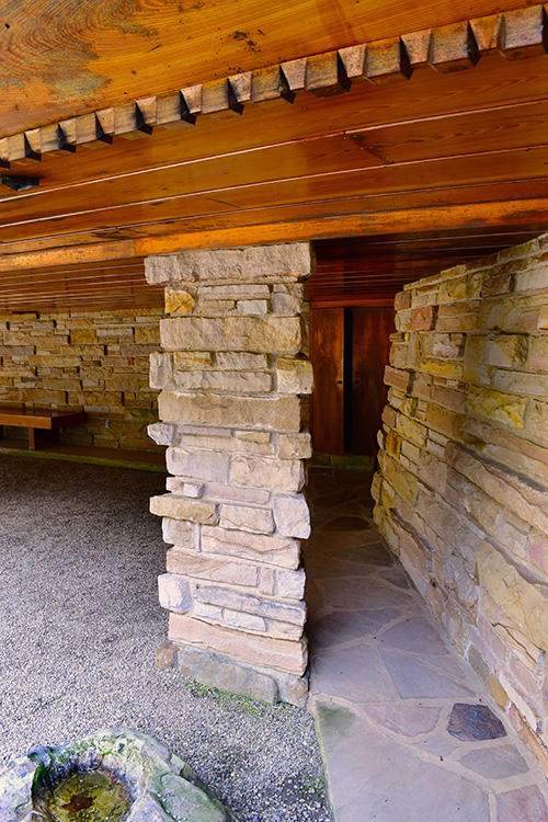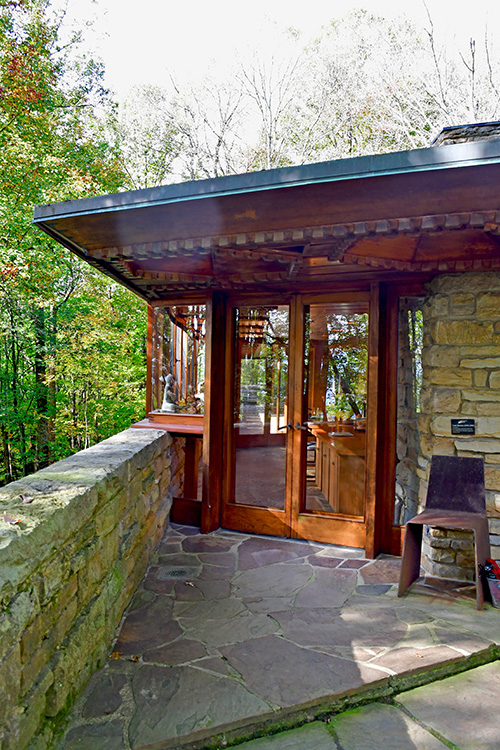 Unfortunately, we were unable to photograph the interior of Kentuck Knob, which serves as a museum showcasing an impressive collection of Frank Lloyd Wright artifacts. This collection features original Wright-designed chairs, furniture, drawings, art glass, and Minic Heritage Henredon prototypes.