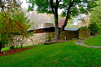 Description: "The mountains of Western Pennsylvania are twice enriched by the genius of America's greatest architect, Frank Lloyd Wright. Located just a few miles southwest of Wright's masterpiece, Fallingwater, and high atop a bluff overlooking the Youghiogheny River gorge stands Kentuck knob, an eloquent testimony to the unity of man and nature.