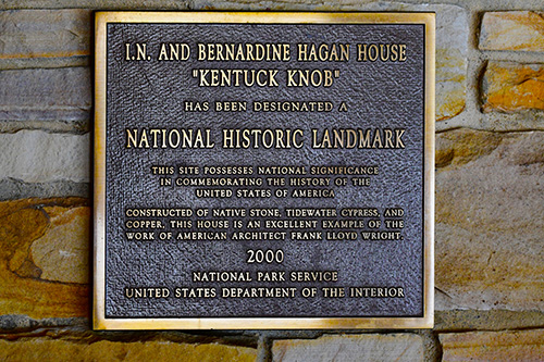 Knob was designed by Wright in 1954 for I. N. Hagan, owner of the Hagan Ice Cream Company, and his artist wife, Bernardine. The Uniontown couple commission Wright to design the house for their 89 acre track the farmland in the Kentuck district of Steward Township, Fayette County..." (First Edition)