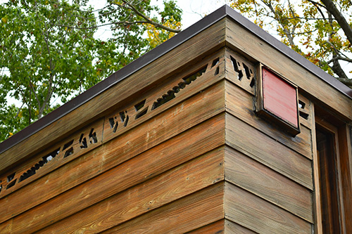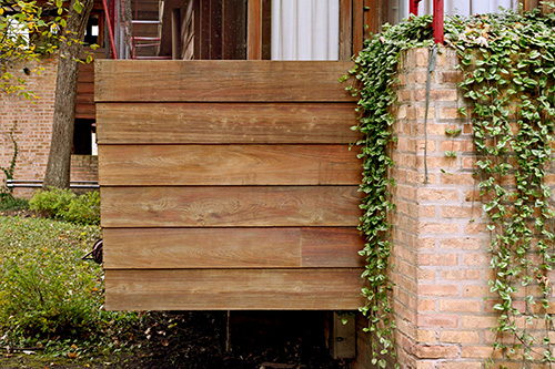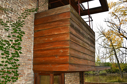 Setting on a sprawling, two-acre expanse thick with trees on the eastern bank of the Des Plaines River, the house enjoys both privacy and a scenic natural setting. The house is elevated on brick piers, serving to safeguard against potential damage from dampness or flooding.