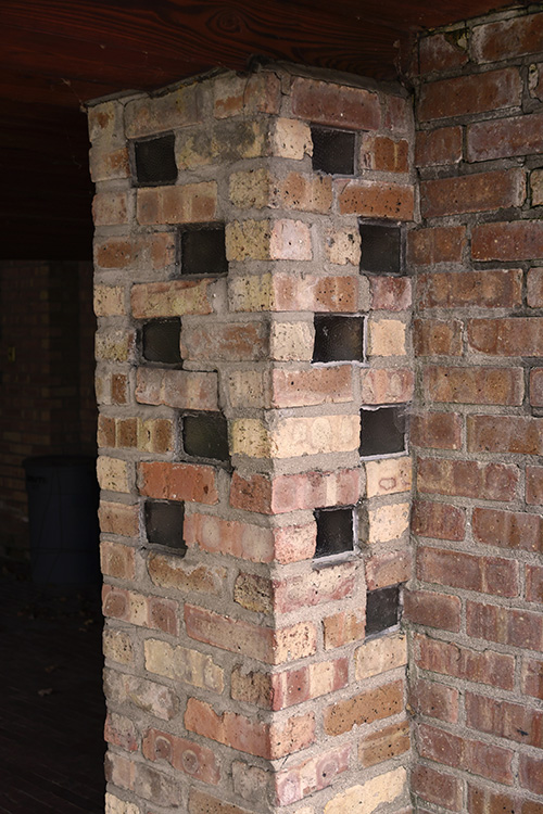 The long and winding drive ends on the North side of the house. A Cherokee red sidewalk leads you around the West end of the house, feet from the water’s edge. As you continue around the corner, the sidewalk leads to the Loggia, situated under the living room. At the end of the loggia is the hidden entry to the house. There is also a shortcut through the carport. The ground level includes the carport, servants quarters, guest bedroom, loggia and entry hall.