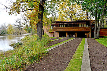 Bruce Brooks Pfeiffer wrote: “Now again in 1940, as in 1900, he was building for the prairie condition, intensified here because of the marsh and the adjacent river. For his friend he created one of the loveliest homes he ever designed, and both Lloyd Lewis and his wife Kathryn lived in the house in a beautiful setting, with every detail and feature designed by their architect-friend... the result shows such a marvelous interior harmony, and peaceful blending with the wooded site, that the house truly became a tribute to both of them and their friendship.” Frank Lloyd Wright Monograph, 1937-1941, 1986/1990, p.170.