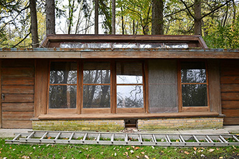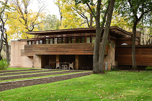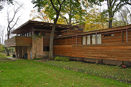 Lloyd Lewis Residence & Farm Unit, Libertyville, Illinois, 2019 (1939/43 - S.265/266). Set of 80 images of the Lloyd Lewis Residence, photographed on October 16, 2019. On a road trip through the Midwest, we took the opportunity to visit and photograph the Lloyd Lewis Residence. Designed by Frank Lloyd Wright in 1939. Wright resurrected the Willey Scheme I design, first conceived in 1932. October 14 was a beautiful, slightly overcast fall Midwest day, perfect for capturing the Lewis Residence.