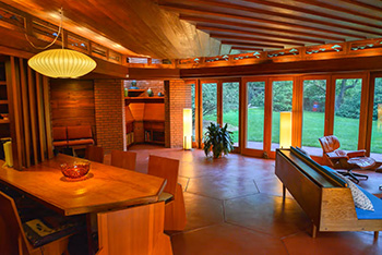 exemplifies Wright's Usonian homes, utilizing a hexagon unit