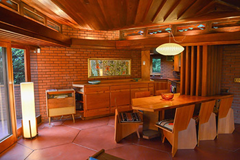 Lloyd Wright in 1954. The living room is on the left, the dining
