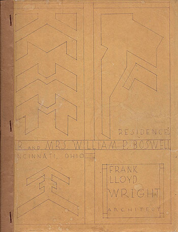 Description: William P. Boswell Residence, Cincinnati, Ohio (1957 - S.423). Detailed specifications for the construction of the Boswell residence, from concrete and masonry, to hardware, plumbing and heating. The home was completed by the Taliesin Architects in 1961.