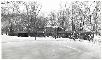 Description: Designed by Frank Lloyd Wright in 1950. Constructed of stone, the home parallels the shore of Lake Erie. An in-line Usonian design. Stamped on verso: "Ray Matjasic, Chief Photographer, The Plain Dealer, Cleveland, Ohio." Hand-written on verso: "Home designed by Frank Lloyd Wright. 6363 N. Lake Road, North Madison, Ohio." Stamped on verso: "Jan 26 1966." Photographed by Ray Matjasic. Acquired from the archives of The Plain Dealer.