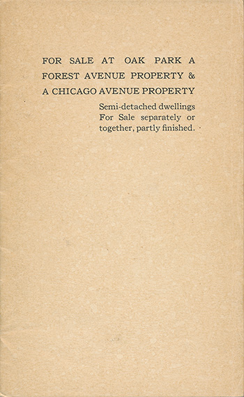 Title: For Sale At Oak Park, A Forest Avenue Property & A Chicago Avenue Property. Semi-detached dwellings For Sale separately of together, partly finished. (Soft Cover) (Possibly published by the Real Estate Agents, Oak Park.)