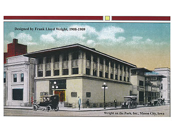 Mason City was the first city in the State of Iowa to have a building by Frank Lloyd Wright, but it came about on a visit by Wright to design his Park Inn Hotel - City National Bank building completed two years later. It was another forty-one years before the next Iowa client commissioned Wright to build a home. How this first house came about involves an interesting story.