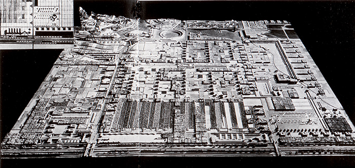 Left: Model of Broadacre City.Date: 1935 Title: Broadacre City model quarter section, 1935.
