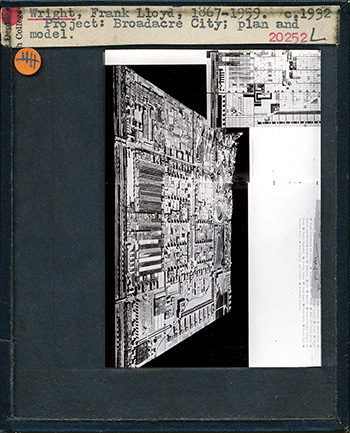 Title: Vintage 4" x 3.25" Magic Lantern Slide of Broadacre City Model and plan, 1935 (FLLW#3402).