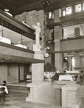 Description: Chicago Architectural Photographing Company, Chicago. Original gelatin silver photograph printed by photographer Clarence Fuermann (1883-1983). Printed in the early 1960s from the original negative (1913-14). Clarence Fuermann of Henry Fuermann and Sons. The original image was published in "The Life-Work of the American Architect Frank Lloyd Wright" 1925, page 76, center.