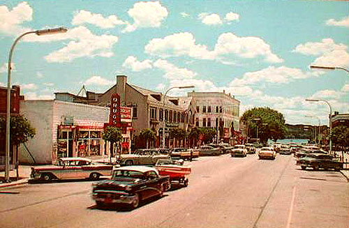 1950s. Looking South down Broad Street toward Lake Geneva. Hotel
