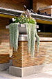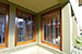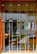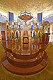 Thin horizontal bands of these leaded glass and gold-foiled glass windows