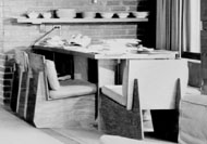 Description: Frank Lloyd Wright designed this house, which was built in 1940 for Loren B. Pope. Mr. And Mrs. Robert A. Leighey purchased the home in 1946. In December 1963 Mrs. Leighey was notified that her home was in danger of demolition for a highway right-of-way in Falls Church, Fairfax County. In July 1964, she signed an agreement with the National Trust to save the home. Dismantling of the home began in the fall of 1964, reconstruction was completed in June 1965. She resumed residency of the home in July 1969. Photographed by Jack E. Boucher. Courtesy of The Library of Congress. Continue, additional images...