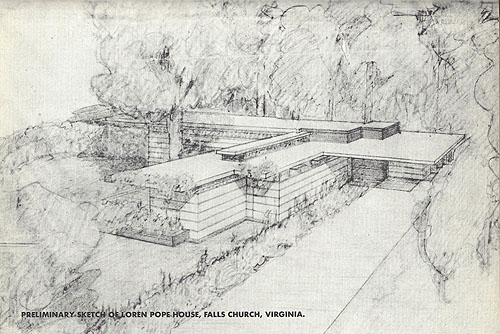In August 1939, Loren B. Pope, a journalist working for the Washington Evening Star, Wrote to Frank Lloyd Wright and asked if he would design a home for his property in Falls Church, Virginia. Two weeks later Mr. Wright responded, "Of Course I am ready to give you a house. We are expecting to see you soon..."