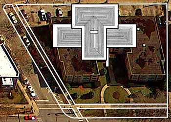 Description: Site Plan (1963) superimposed over an areal view of the lot in 2012. The lot was located on the Southeast corner of Sheridan Road and Rogers Avenue. Set back against the alley, this offered a larger front and side yard. A large apartment complex now occupies the space of the original single family Steffens Residents. Rogers Avenue was widened to accommodate parking on the street. Image courtesy of the Google Maps. See Additional Information...