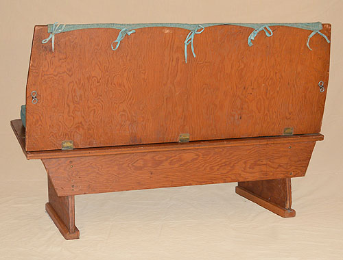 Size: Two Pews/Benches 21" deep x 42" wide x 27 1/2" high x 3/4" thick plywood. The seat slopes down from the front to the back, and is 13 ˝" high in the front, 11 ˝" high in the back.