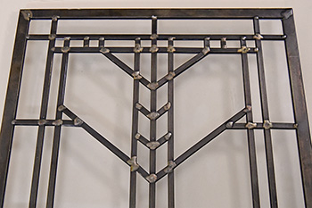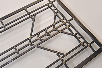 Description: Andersen Eucalyptus Art Glass reproduction which revives the window designs of the Charles Ennis Residence window. Frank Lloyd Wright designed the house and art glass in 1923.