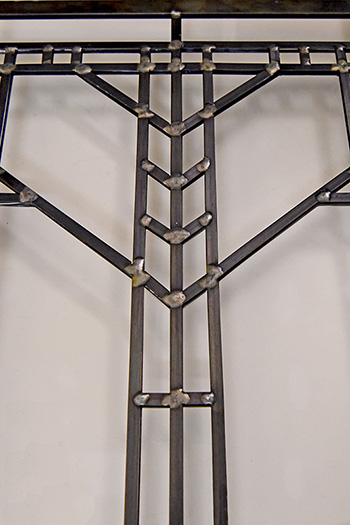 “Four patterns adapted from windows Wright himself designed make up the Frank Lloyd Wright Series in the Art Glass Collection. Each remains true to the principles that governed Wright's original work. Simplicity, unity and nature. Two of the designs in this series revive art glass windows from Prairie Style homes designed by Wright. The third is from a home Wright designed to be constructed of patterned concrete blocks, while the fourth is an adaptation of windows created for Unity Temple...”