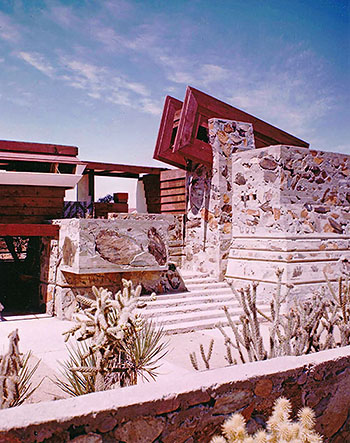 Description: Arizona office of Taliesin Associated Architects, and campus of the Frank Lloyd Wright School of Architecture, established in 1932 by Mr. And Mrs. Frank Lloyd Wright. (Produced by The Frank Lloyd Wright Foundation. Photograph by John Amarantides.) Not dated.