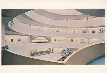 Description: Part of a set of eight color post cards of the Guggenheim Museum. Designed by Frank Lloyd Wright in 1956. View of the main gallery. Text on verso: Main Gallery. The Solomon R. Guggenheim Museum, 1071 Fifth Ave., New York , N.Y. 10028.”