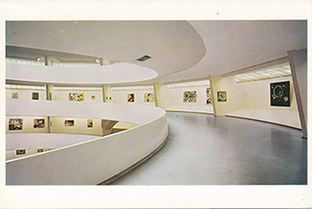 Description: View of the Guggenheim Museum Ramp Galleries. Part of a set of eight color post cards of the Guggenheim Museum. Designed by Frank Lloyd Wright in 1956. Ramp Galleries at the Guggenheim Museum. Text on verso: “Ramp Galleries. The Solomon R. Guggenheim Museum, 1071 Fifth Ave., New York , N.Y. 10028.”
