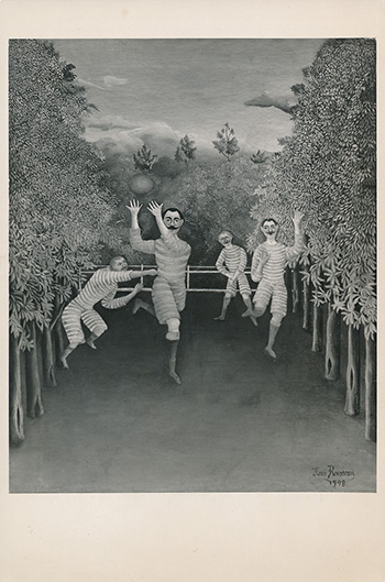 Description: Real Photo Post Card. Part of the Guggenheim Museum Collection. Part of a set of eight color and B&W post cards of the Guggenheim Museum. Designed by Frank Lloyd Wright in 1956. Text on verso: “Henri Rousseau: Football Players, 1908. Oil on canvas, 39 ˝ x 31 5/8". The Solomon R. Guggenheim Museum, 1071 Fifth Ave., New York , N.Y. 10028.” Real Photo Post Card.