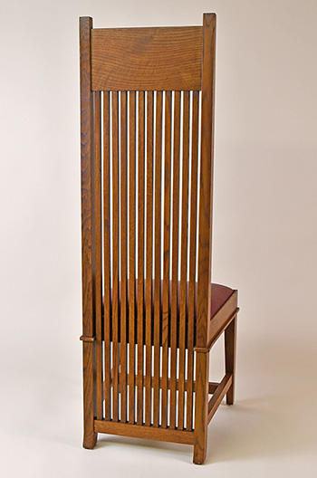 15) Dana-Thomas House Master Bedroom. View of the Master Bedroom from the West. The Master Bedroom sets above the Living Room. Text on face: "The Dana-Thomas House. Photo: Doug Carr. 15. Detail of Master Bedroom 1990. SP20-45. Dist. DTH Foundation." Original 35mm Color slide and high-res 10 x 7 digital image. (ST#1993.91 -15)