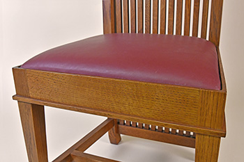 17) Dana-Thomas House Gallery. View of the Gallery from the West. The Parapet is through the opening toward the left. It leads to the Conservatory. Two Wright designed print tables are in the foreground. All furniture was designed by FLW. Text on face: "The Dana-Thomas House. Photo: Doug Carr. 17. Gallery 1990. SP20-45. Dist. DTH Foundation." Original 35mm Color slide and high-res 10 x 7 digital image. (ST#1993.91 -17)